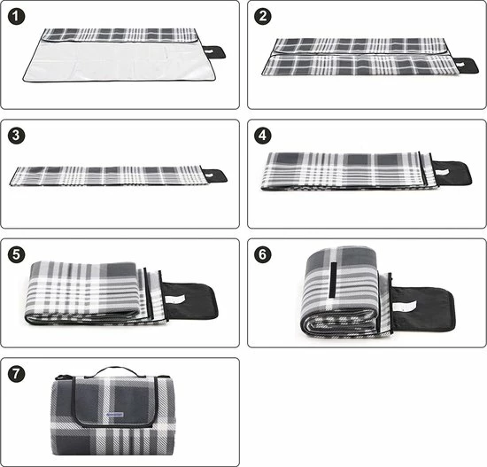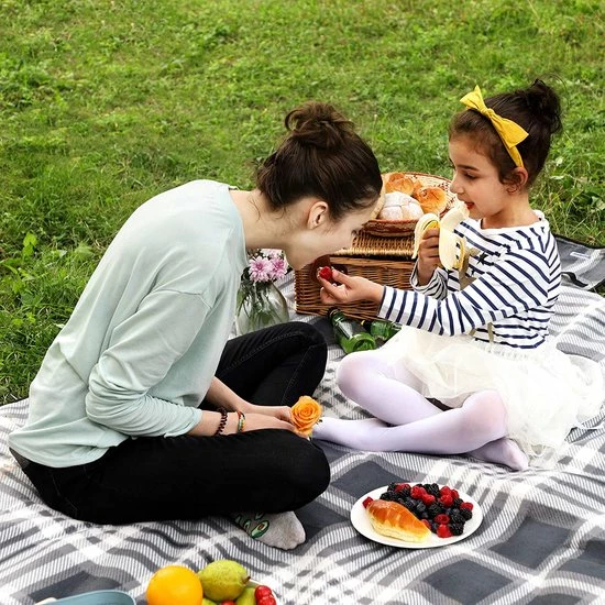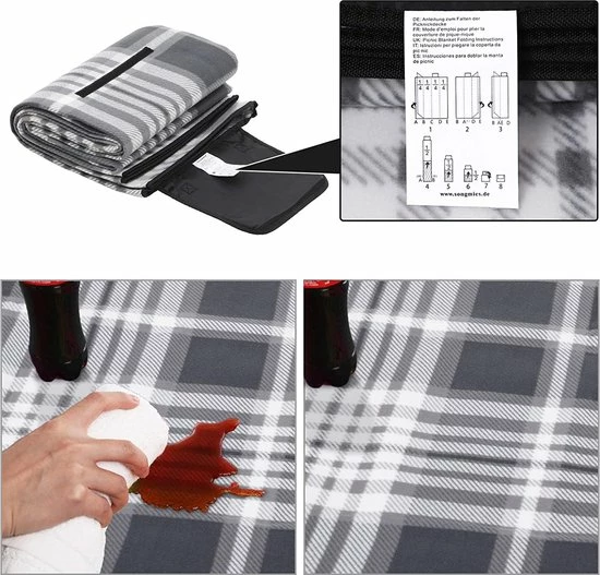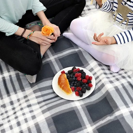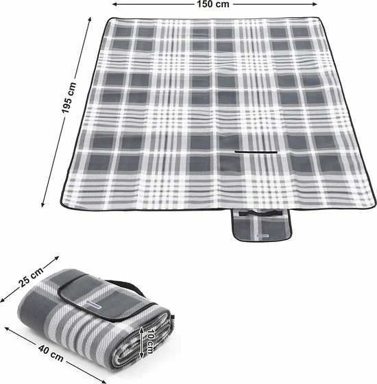 Wat je krijgt: een 195 x 150 cm grote picknickdeken in grijs en wit, perfect voor een geweldig dagje uit met het hele gezin.