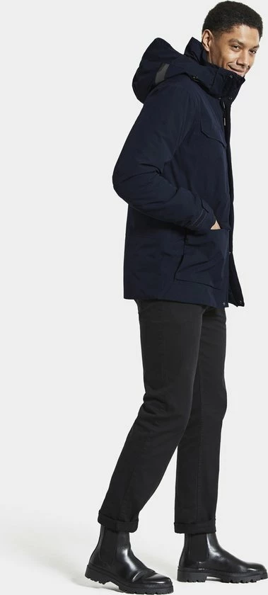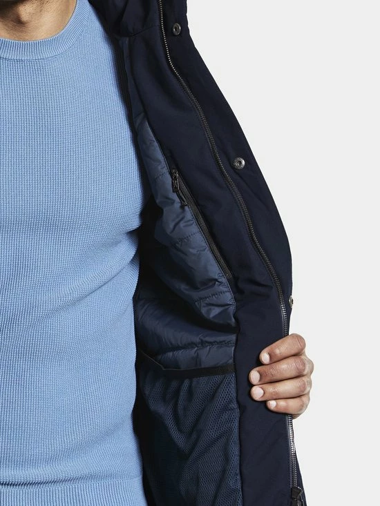Vrijetijdslevensstijlparka met afneembare capuchon, licht gewatteerd, om te dragen in de stad, op het platteland of wanneer je actief bent., Zacht polyesterweefsel met dof oppervlak (katoen touch) Kleur: 060 Black, 999 Dk Night blue, 300 Deep Green – Solution dyed , Normale pasvorm / Recht model, Reflecterend paneel op capuchon. Afneembare capuchon. Veel brede voorzakken, waarvan één met WR-ritsen