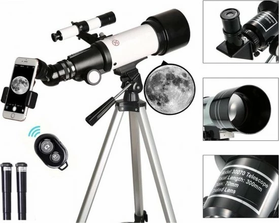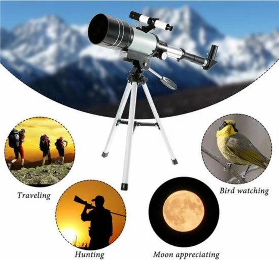 EFLO® Refractor Telescope – Grote opening: 70 mm en 300 mm. De brandpuntsafstand zorgt voor meer licht en duidelijkere beelden, zelfs beginners kunnen duidelijke beelden krijgen. Hoe groter het diafragma, hoe groter het gezichtsveld, en hoe duidelijker het beeld.