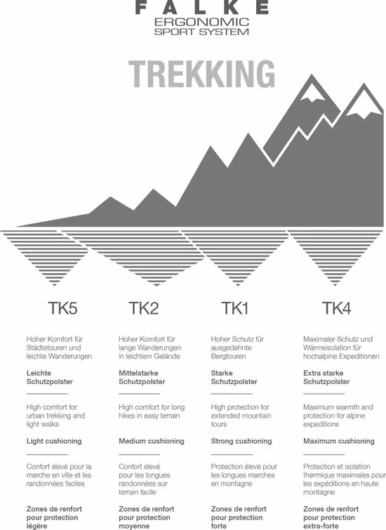 Unieke FALKE kwaliteit: Wij stellen de hoogste eisen aan wat uw lichaam beschermt en verwarmt. FALKE: traditioneel bedrijf en de hoogste kwaliteit sinds 1895. Genderspecifieke proporties dankzij speciale breiprocessen en cilinders; anatomische L/R pasvorm met teen- en zoolgedeelte aangepast aan elke voet, een FALKE innovatie die zorgt voor een kreukvrije pasvorm, bescherming tegen drukpunten en een langere levensduur.