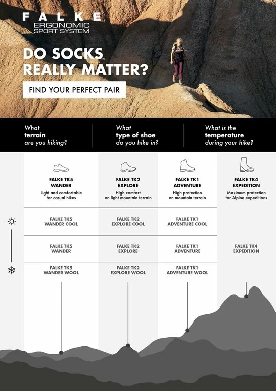 - De versterkte, ademende en hoogwaardige thermosokken van aangenaam zachte wol zonder motief zorgen voor een aangenaam, verkoelend gevoel tijdens het wandelen. Wandelsok van FALKE voor lange wandelingen in gemakkelijk terrein.