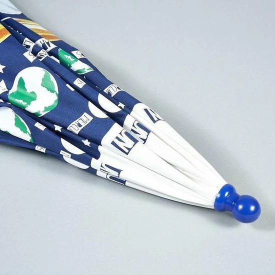 Floss & Rock Kleurveranderende Paraplu Planeten. Met deze paraplu zie je het heelal tijdens een regenbui op een magische wijze tot leven komen. Wanneer de druppels de paraplu raken zullen de planeten kleur krijgen, en verandert de witte opdruk van de paraplu in een kleurrijk sterrenstelsel. Wanneer de paraplu droogt, zullen de kleuren weer verdwijnen.