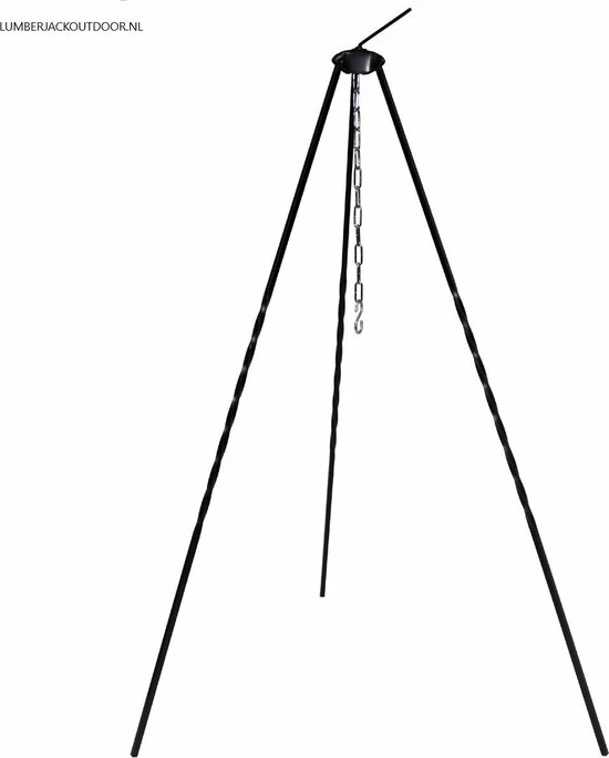 Fox outdoor bbq driepoot voor dutch oven, hongaarse kookketel of bbq rooster hoogte 1 meter met ketting en haak, hoogte 1 m, ijzer.