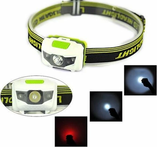 Led hoofdlamp 300 lumen Wit & Rood licht / Werkt op 3x AAA-batterij / Waterdicht
