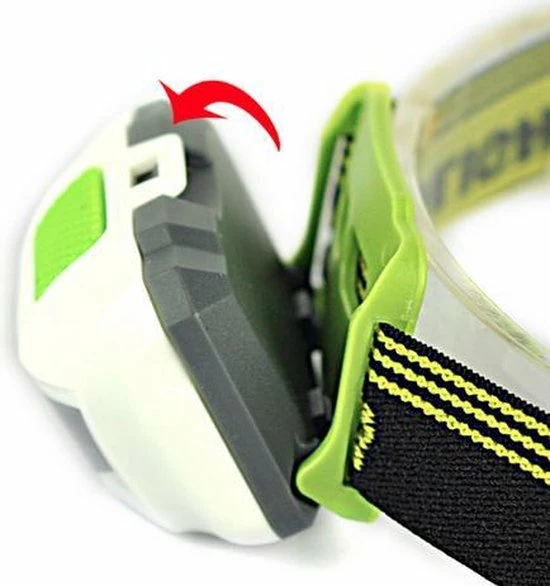 Waterdichte compacte en lichtgewicht hoofdlamp met 300 lumen lichtopbrengst. Schijnt wit licht of rood licht. Werkt op 3x AAA batterij (niet meegeleverd). Met verstelbare elastische hoofdband.