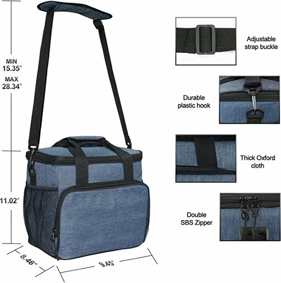 De koeltas is groot genoeg om de benodigdheden te bevatten die een gezin nodig heeft voor een picknick, terwijl hij niet omslachtig is. Het is ideaal voor kamperen, wandelen, barbecues, enz.