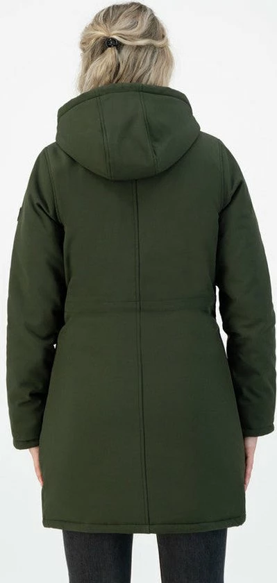 De Kjelvik “Tina” is een lange gewatteerde softshell jas. De softshell voelt heerlijk zacht aan en bevat stretch. De softshell is gemaakt van een winddichte, waterafstotende en ademende stof.