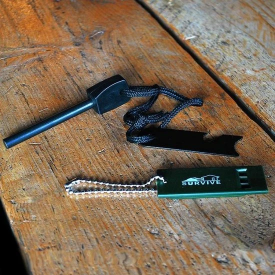 | Verpakkingsinhoud | Firestarter, (liniaal, moersleutel, en, flessenopener, met, reddingsfluitje) |