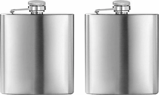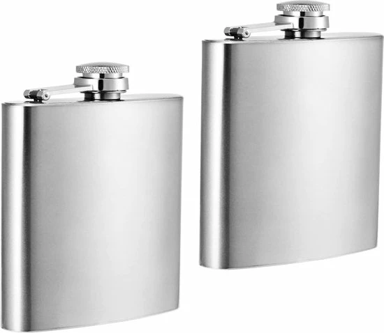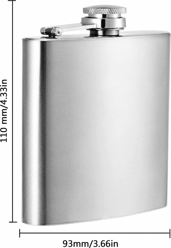 Deze set Roestvrijstalen heupflessen kunnen elk 6 oz van uw favoriete drank bevatten. De heupfles meet 11cm hoogte x 9cm breedte x 2cm diepte. Ze hebben een gepolijste afwerking met een mooie gespiegelde bovenkant en dop.