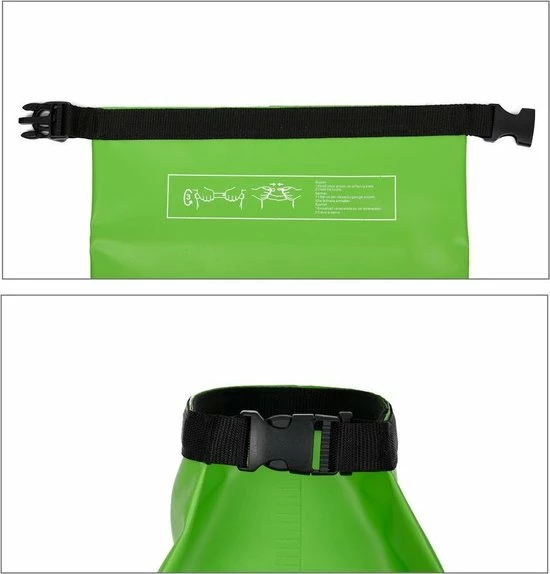 Dankzij de verstelbare schouderriem kan de dry bag tas als rugtas of schoudertas gedragen worden. Omdat de dry bag is voorzien van karabijnhaak is het eenvoudig om deze dry bag vast te maken aan andere objecten.