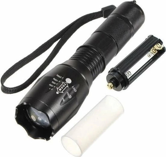Professionele Zaklamp met een lichtopbrengst van maar liefst 2000 echte Lumen! Met behulp van de zoomfunctie is het mogelijk om het lichtoppervlak te veranderen en kunt u dus met een felle intensiteit inzoomen op bepaalde objecten.