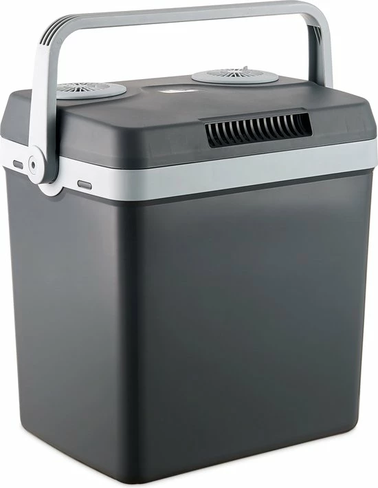 De buitenzijde is gemaakt van hard kunststof. Samen met zijn neutrale donkergrijze kleur – met o.a. een handig wit handvat – maken de box een graag geziene gast op allerlei gelegenheden. De koelbox is 44,7 cm bij 45,8 cm bij 32,7 cm groot en heeft een gewicht van slechts 6,2 kilogram waardoor je hem eenvoudig overal mee naartoe. De totale inhoud is 32 liter, maar door het geplaatste koelelement – aan de binnenkant van het deksel – is de netto-inhoud 25 liter. Groot genoeg voor al je wijn, water, frisdrank of bier, en allerlei eetbare lekkernijen!