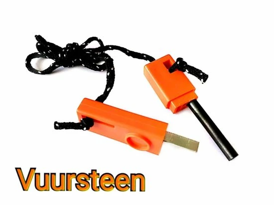 Met deze magnesiumstick is vuur maken op een primitieve manier geen probleem. Je kent deze vuurmaker misschien van progamma’s als Expeditie Robinson en Survivor. Met deze fire stick kun je makkelijk zelf vuur maken met behulp van brandbare watten, wat droog hout, vezels of droog gras. De magnesiumstick zelf werkt ook onder vochtige omstandigheden en geeft vonken van 3000 graden.