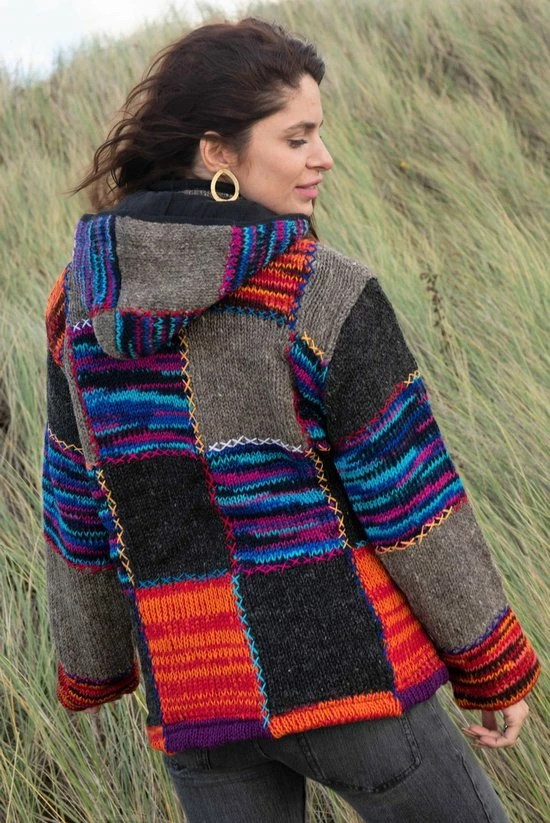 Geen van deze kleurrijke patchwork jassen zijn helemaal gelijk van kleurstelling, en dus uniek.
