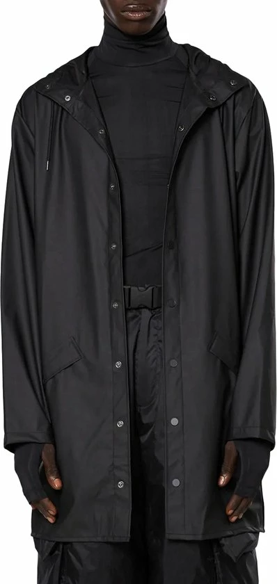 Long Jacket is een langere versie van Rains’ klassieke ontwerp, Jacket. Deze eigentijdse uniseks regenjas biedt veel functionaliteit in een minimalistisch silhouet. Kenmerken zijn onder andere dubbel gelaste schuine klepzakken, verstelbare manchetten en een fishtail zoom. De look is afgewerkt met drukknopen, oogjes onder de armen, en een rugstuk met verborgen ventilatieopeningen.