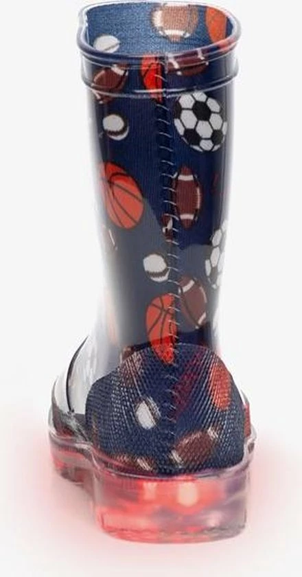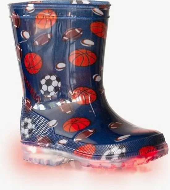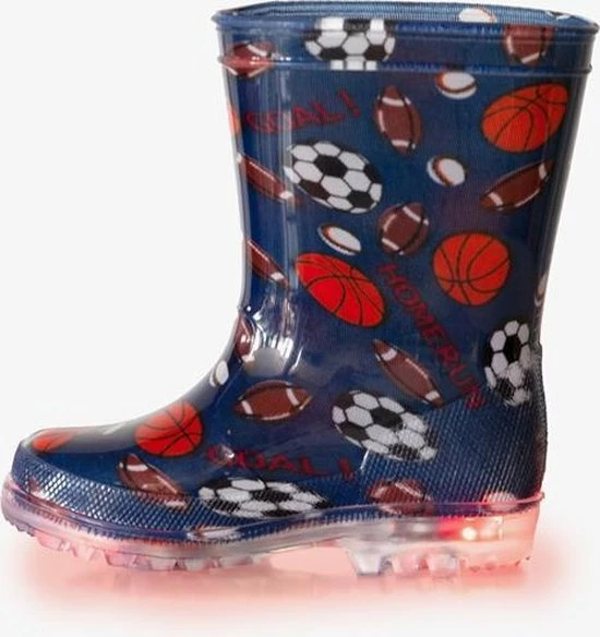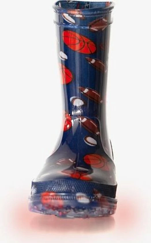 Blauwe regelaarzen voor kids met sportieve print. Gemaakt van synthetisch PVC, wat de laarzen flexibel maakt. Voorzien van een stevige profielzool die zorgt voor veel grip, en optimaal comfort biedt. Tevens hebben de regenlaarzen lichtjes in de zool! Ontworpen voor een all-round bescherming in verschillende (weers)omstandigheden en condities, van wandelen in het bos tot stampen in de plassen of door het zand. Verkrijgbaar in de maten 20 t/m 30.