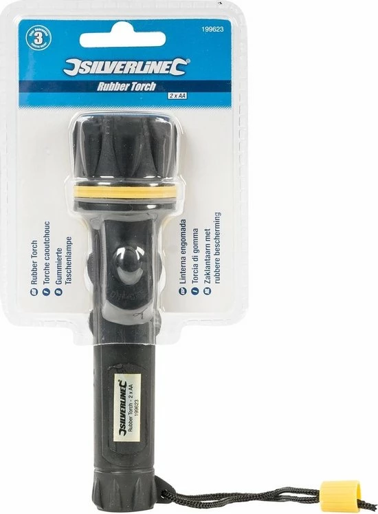 - 1 x zaklantaarn met rubberen bescherming, 2 x AA