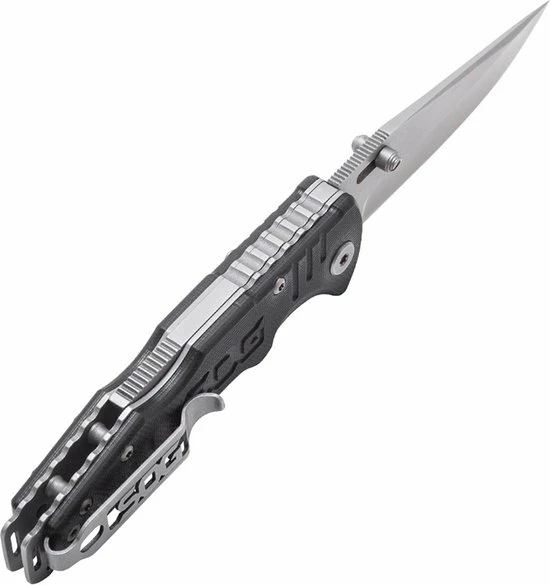 Dit SOG Salute Outdoormes heeft een zeer solide, vrijwel onverwoestbare constructie en is geschikt voor alle denkbare outdoor activiteiten. Dit innovatieve zakmes van de gerenommeerde Amerikaanse firma SOG beschikt over een antisliphandvat dat is vervaardigd van zogenaamd G10 materiaal. G10 bestaat uit glasvezel dat samen met kunststof onder hoge druk is samengeperst. Het resultaat: een slijtvast antislip heftmateriaal dat schokbestendig en waterbestendig is en bovendien bestand is tegen alle denkbare invloeden van buitenaf. Daarmee is G10 zeer geschikt voor zakmessen en outdoormessen die intensief gebruikt worden. De Salute zal niet snel uit je handen glijden, is 100% functioneel en staat garant voor vele jaren indoor- en outdoorplezier! De duimclip, waarmee je de Salute gemakkelijk éénhandig kunt openen, is verstelbaar op de grootte van je hand, waardoor dit tactical outdoormes áltijd goed in je hand ligt! . In geopende toestand wordt het lemmet vergrendeld door een solide Back Lock, die desgewenst ook weer éénhandig is te sluiten. De SOG Salute is voorzien van een pocketclip, die eenvoudig aan beide zijden van het mes gemonteerd kan worden.