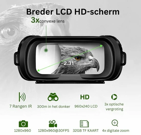 Op zoek naar een goede nachtkijker waardoor je alles kunt zien in het donker? Dan is de verrekijker met nachtzicht van Thuys perfect voor jou. Zowel overdag als in de nacht geeft deze nachtkijker met infrarood de kleur weer. Daarnaast heeft de verrekijker een 4x digitale zoom en een foto & video functie!