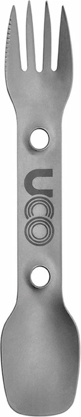 Deze Uco Titanium Spork is een unieke combinatie van een vork, mes en lepel in één. De Uco spork is voorzien van een slim beveiligingssysteem, voor bevestiging aan een tas of rugzak. De spork is geschikt voor thuis of op het werk, maar door zijn extreem lichte gewicht is deze Spork tevens uitermate geschikt om mee te nemen op reis of op vakantie. Deze titanium Spork is duurzaam, compact en ideaal voor in de rugzak, binnenzak, broodtrommel, fietstas, werktas etc. Deze Spork is vrijwel onverwoestbaar, slijt niet en is geschikt voor de vaatwasser!